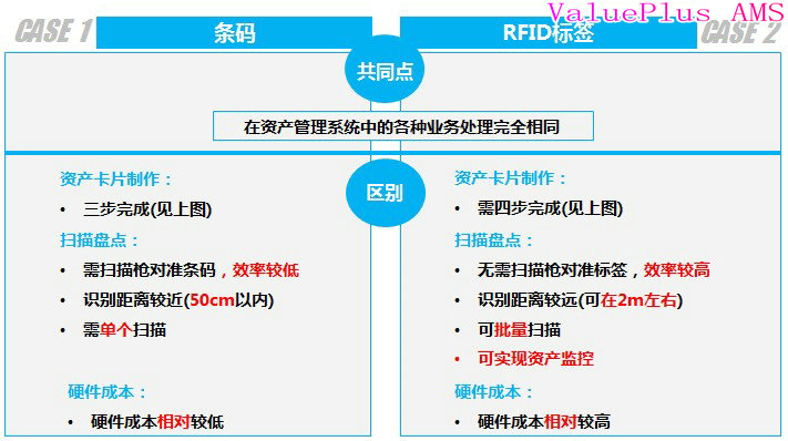 Valueplus资产管理系统分别提供了条码以及RFID标签两种版本,其中特别引入了RFID技术的解决